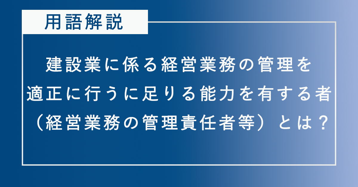 建設業に係る経営業務の管理を適正に行うに足りる能力を有する者(経営業務の管理責任者等)とは?