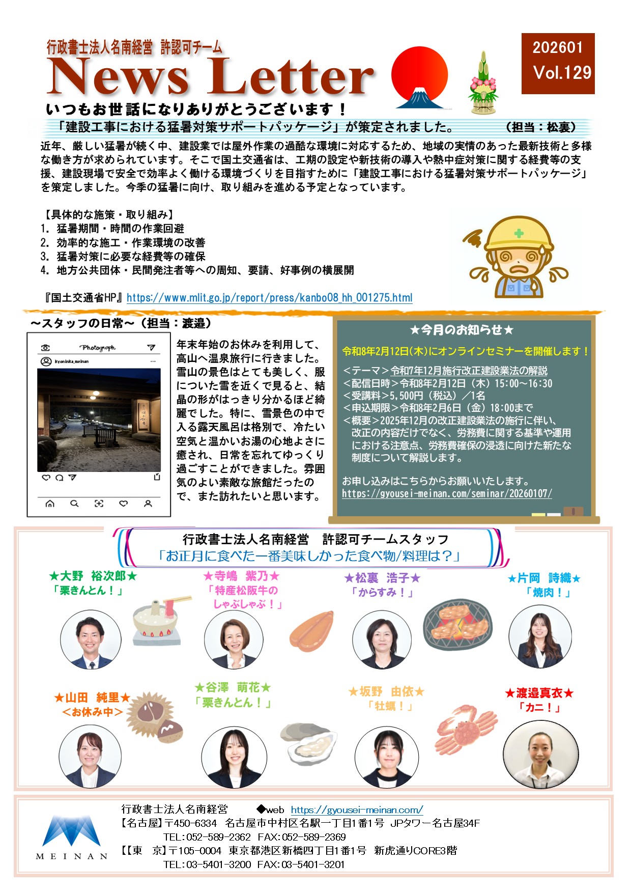 今月のNEWS LETTERを発行しましたので、お知らせいたします。
