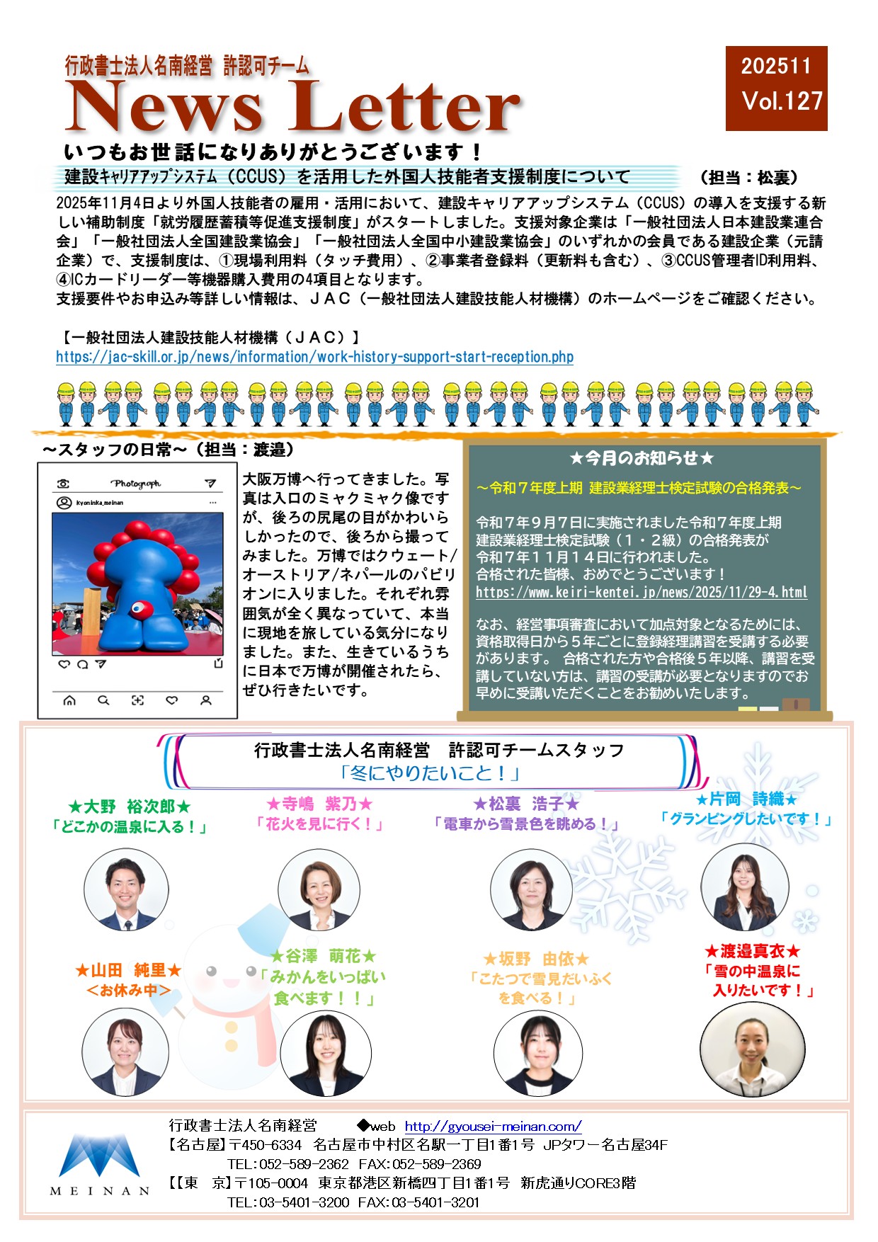 今月のNEWS LETTERを発行しましたので、お知らせいたします。
